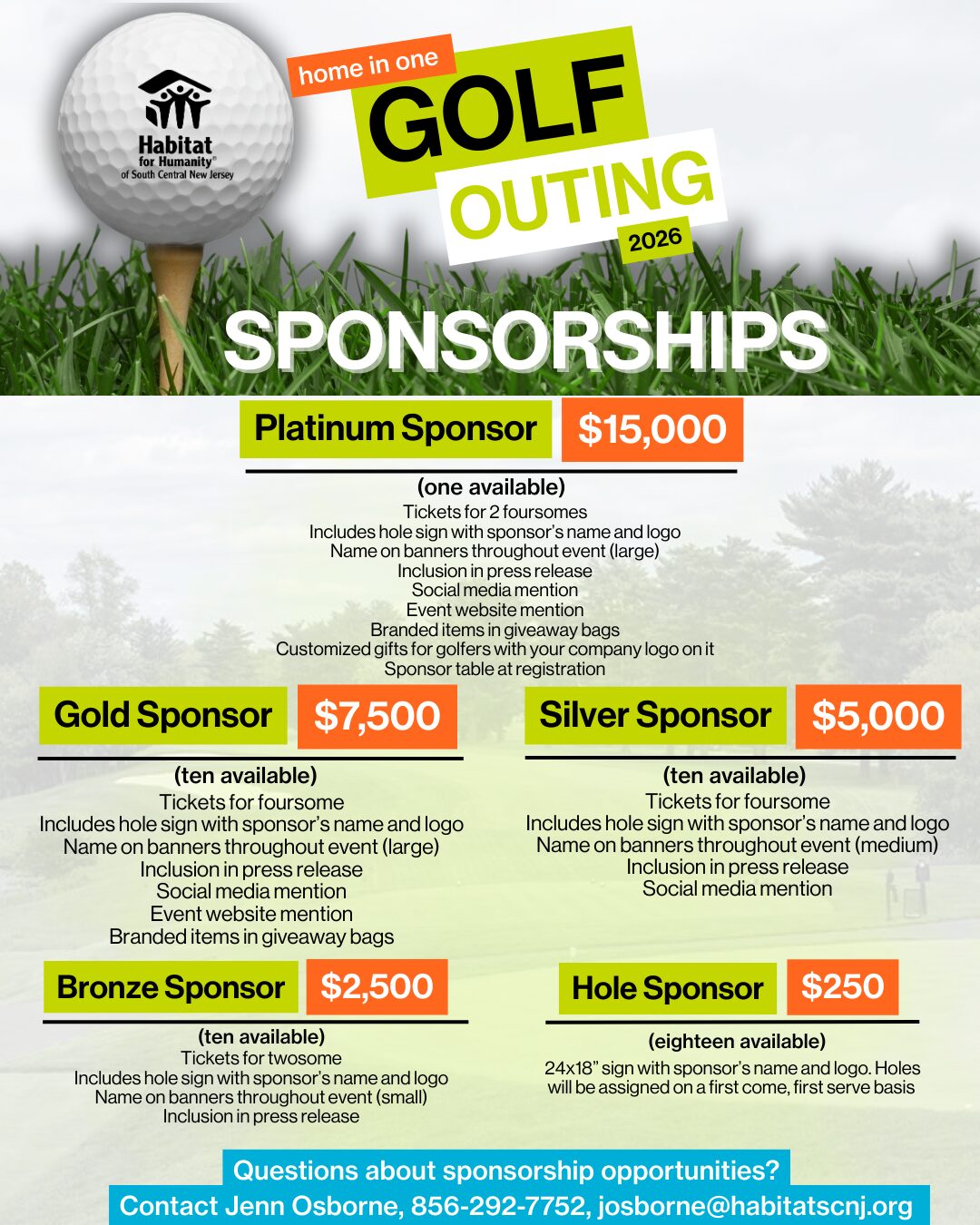 Join Habitat for Humanity of South Central New Jersey for our Home in One Golf Outing on Monday, May 18th at The Legacy Club in Cherry Hill. This annual event brings together supporters, business leaders, and community members for a day of golf, networking, and fun—all in support of Habitat’s mission to build safe, stable, and affordable homes for families in our region.