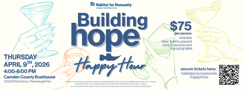 This year, we’re shaking things up! We’ve traded our traditional Building Hope Luncheon for a Building Hope Happy Hour—because celebrating another year of Habitat’s impact pairs perfectly with a great drink and even better company.